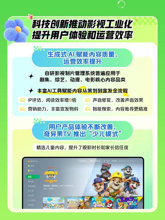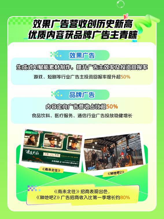 爱奇艺称,这主要得益于生成式AI赋能广告提质增效,AI制作广告素材带动游戏、短剧等行业广告主投资回报率提升超50%。